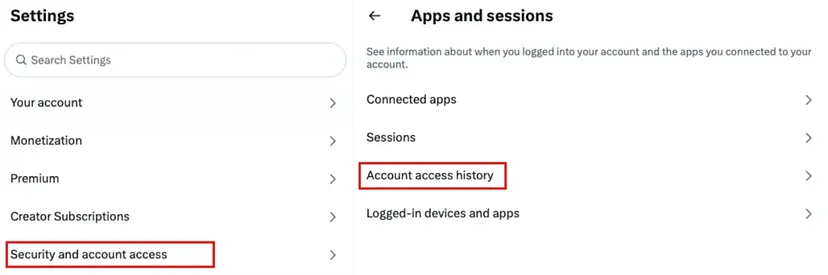 Check method: Settings → Security and account access → Apps and sessions → Account access history