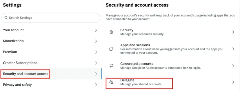 Check method: Settings → Security and account access → Delegate