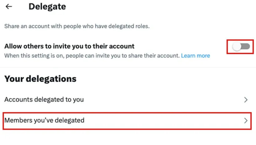 If you find that the account allows invitation management, you need to enter "Members you've delegated" to see which accounts the current account is shared with. If sharing is no longer needed, delegation should be canceled immediately.